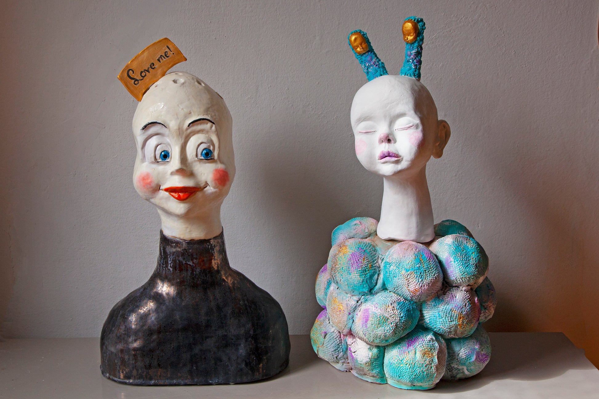 A unique handmade artwork ceramic figurine, "Beiba" belongs to the series of small, original sculptures with fully-formed facial expressions and decorated bodies. This series I've entitled "My Inner Lodgers". This cute sculpture was created based on my childhood drawings. In the elementary school, every notebook had a drawing of Beiba. Beiba is absolutely a reminder of love.