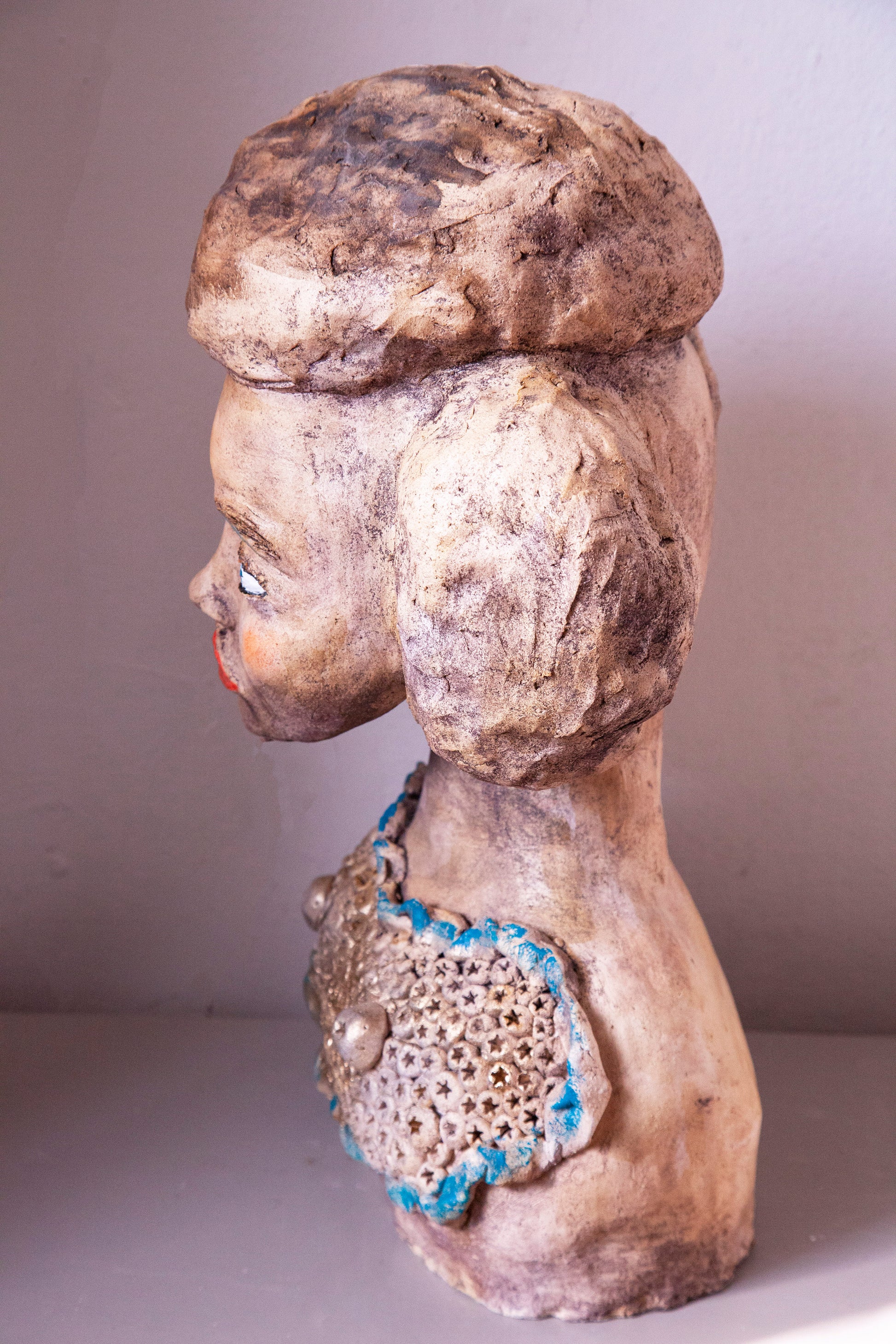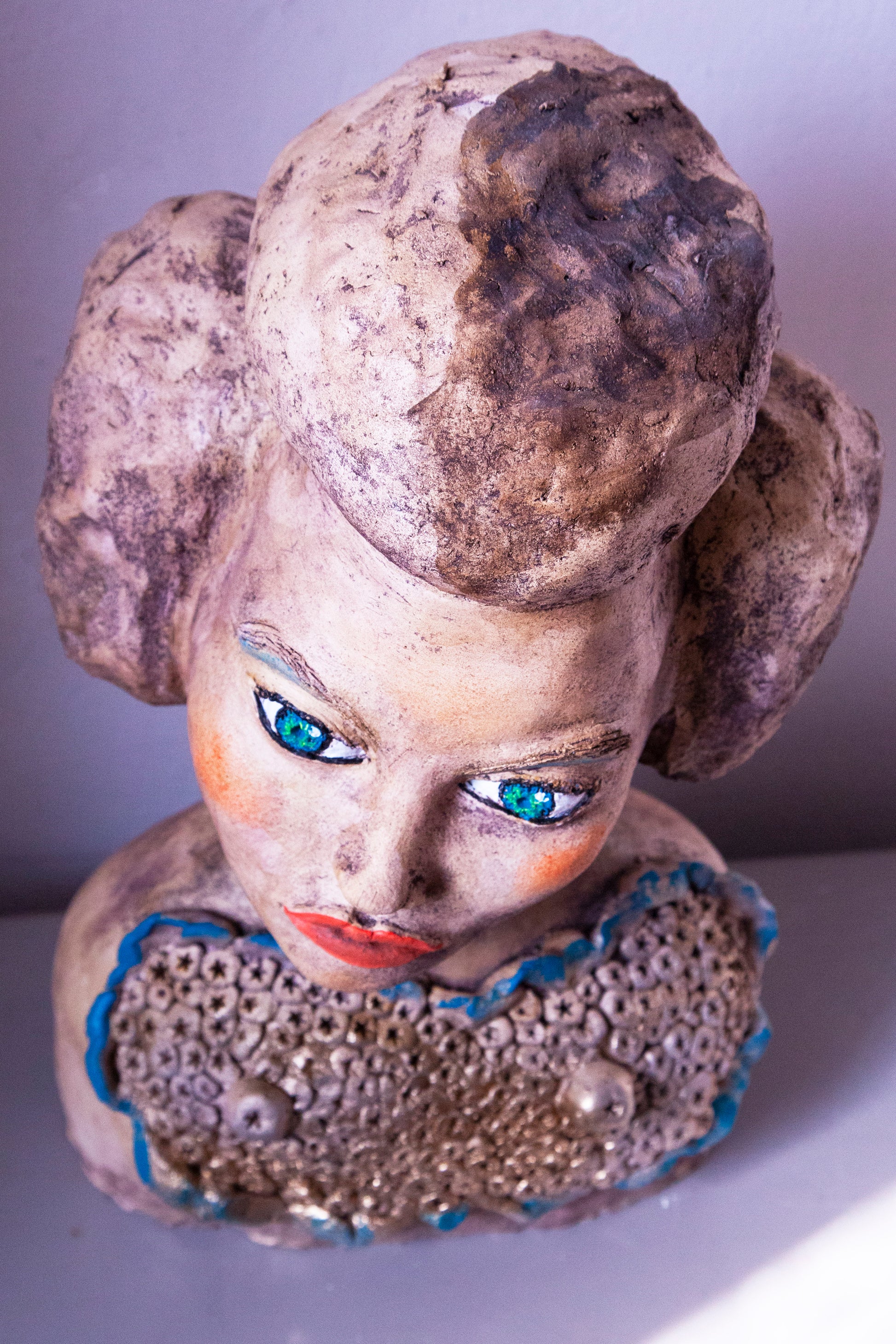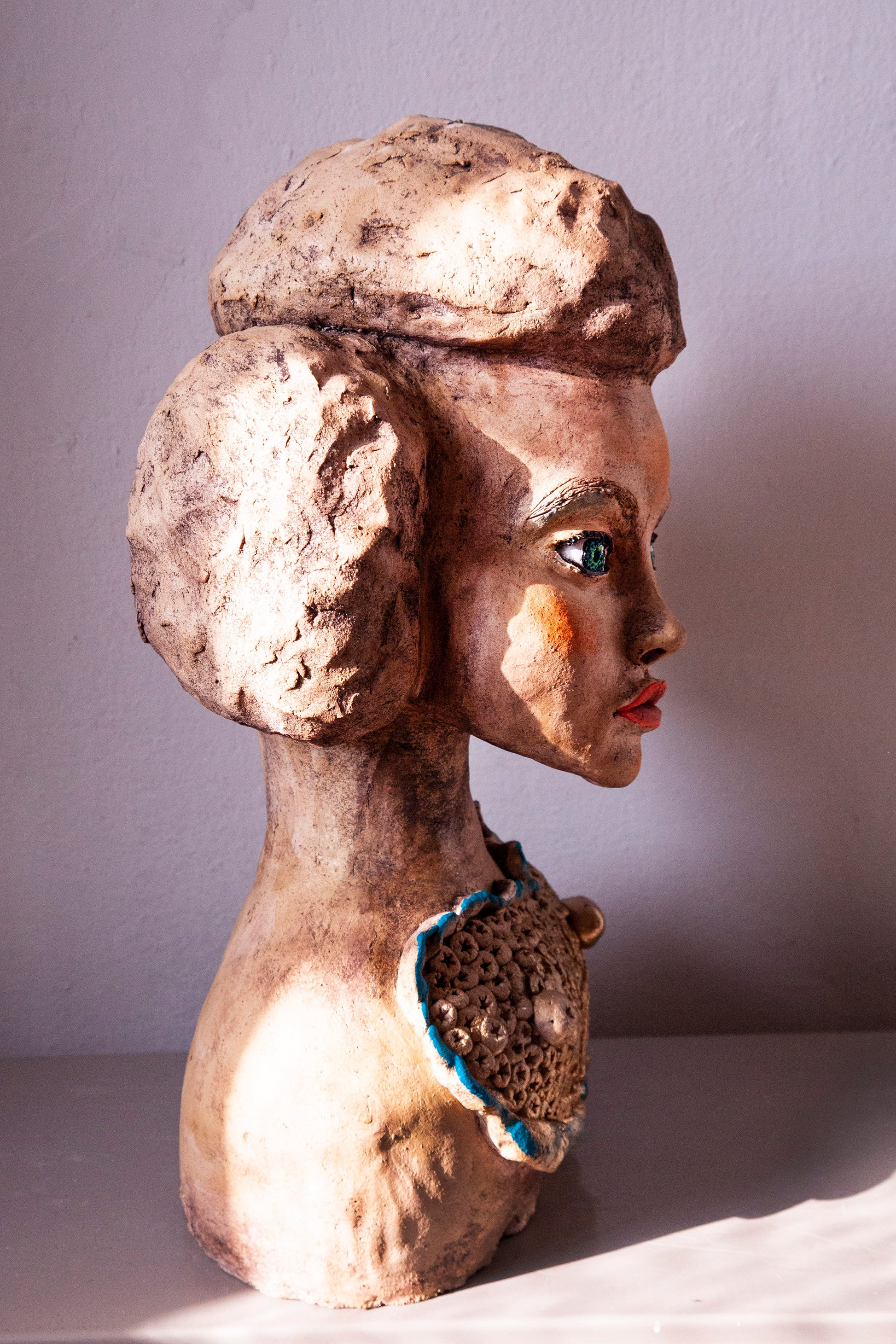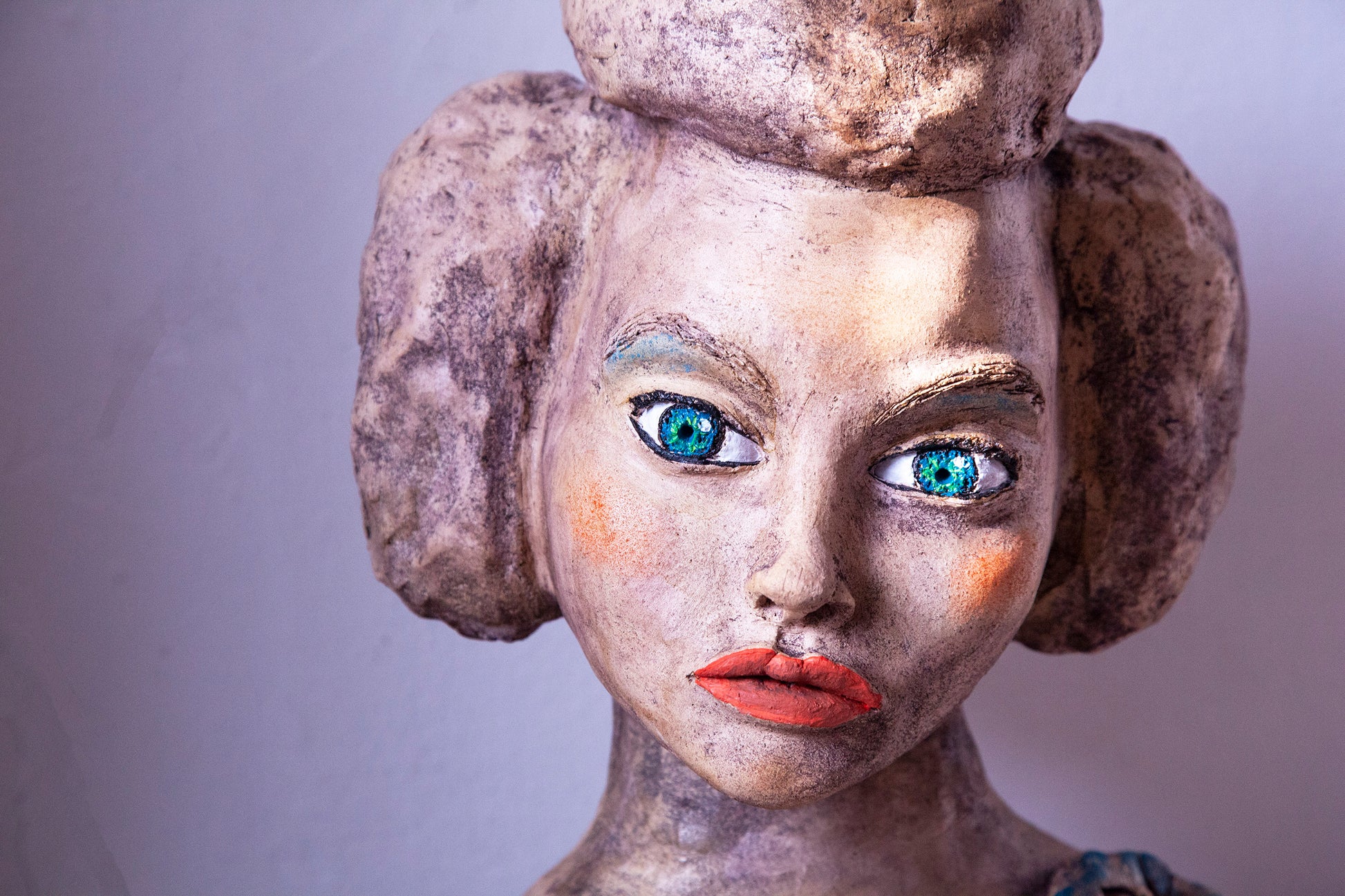 A unique handmade artwork ceramic figurine, "Denise" belongs to the series of original sculptures with fully-formed facial expressions and decorated bodies. This series I've entitled "My Inner Lodgers". For each of my figurines there is a background story of sorts.