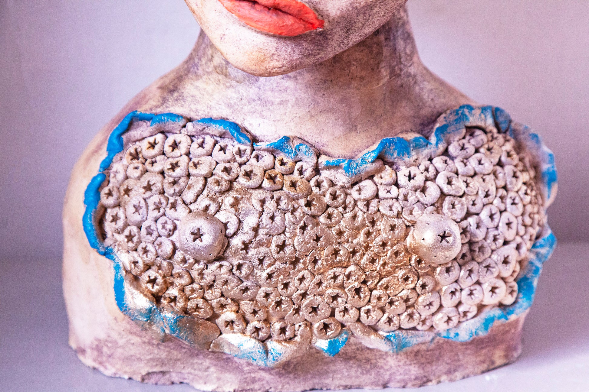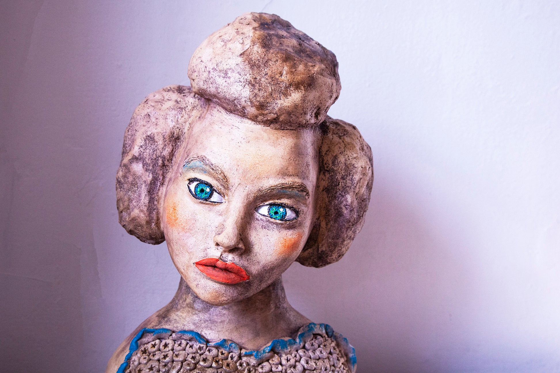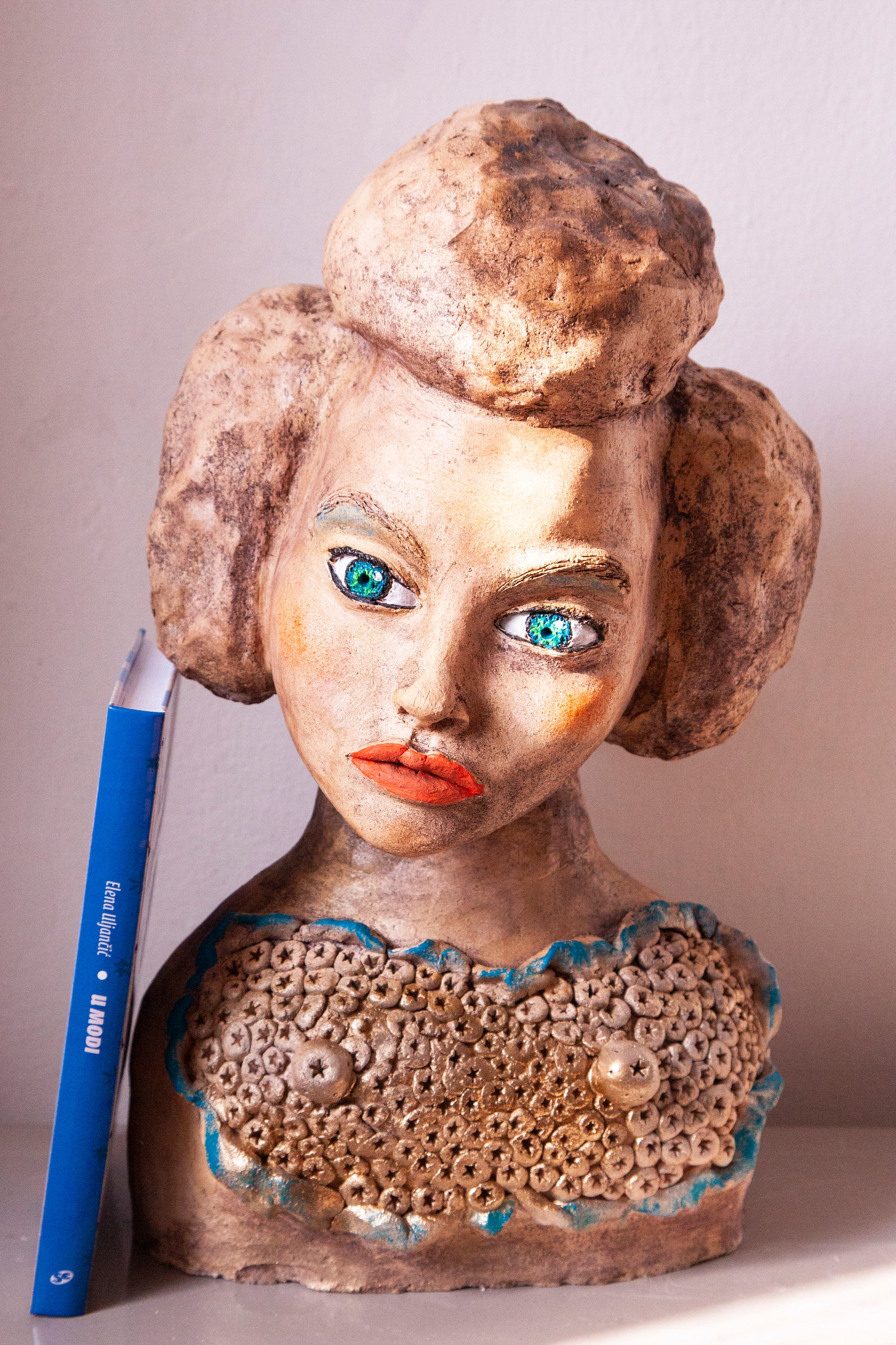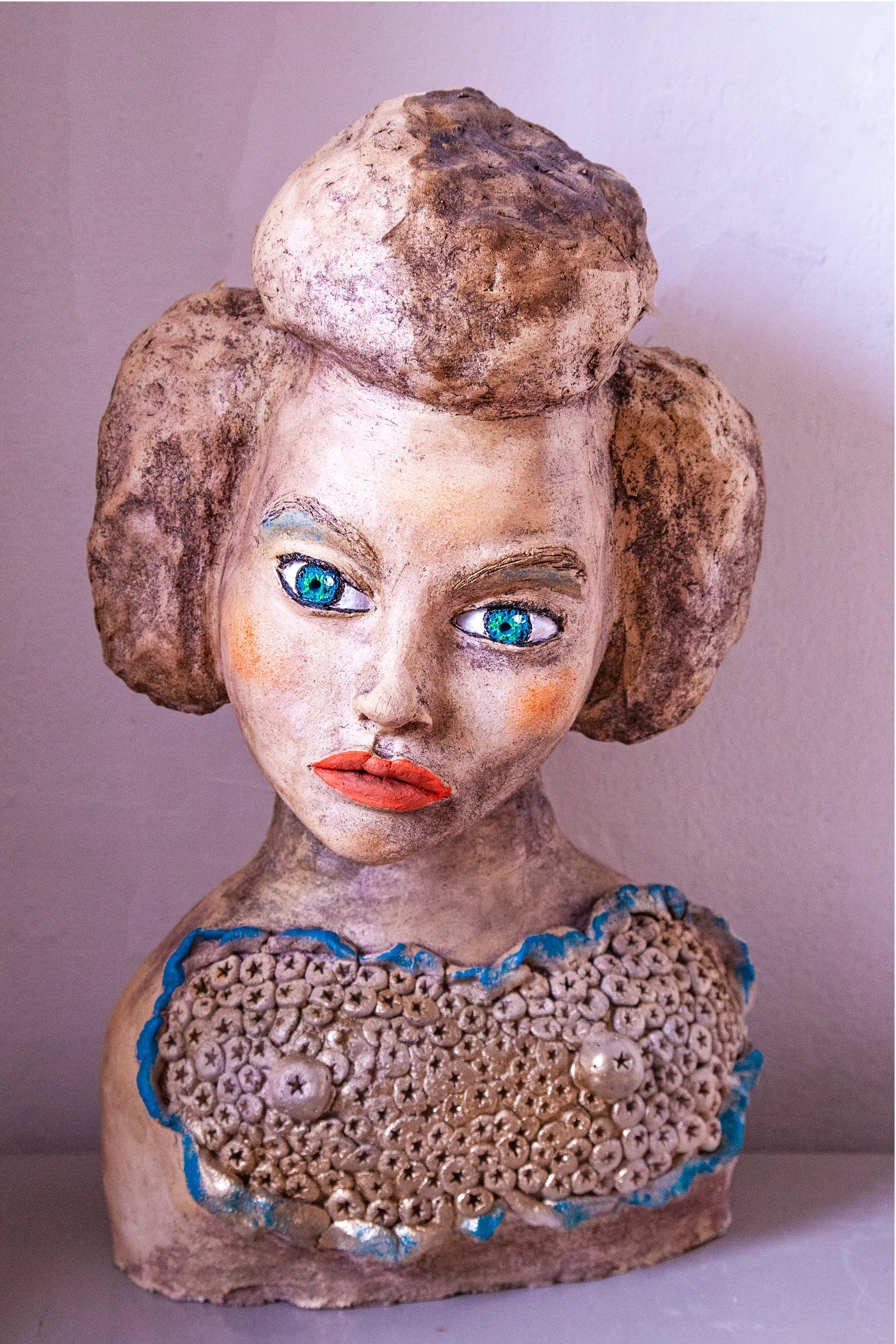 A unique handmade artwork ceramic figurine, "Denise" belongs to the series of original sculptures with fully-formed facial expressions and decorated bodies. This series I've entitled "My Inner Lodgers". For each of my figurines there is a background story of sorts.