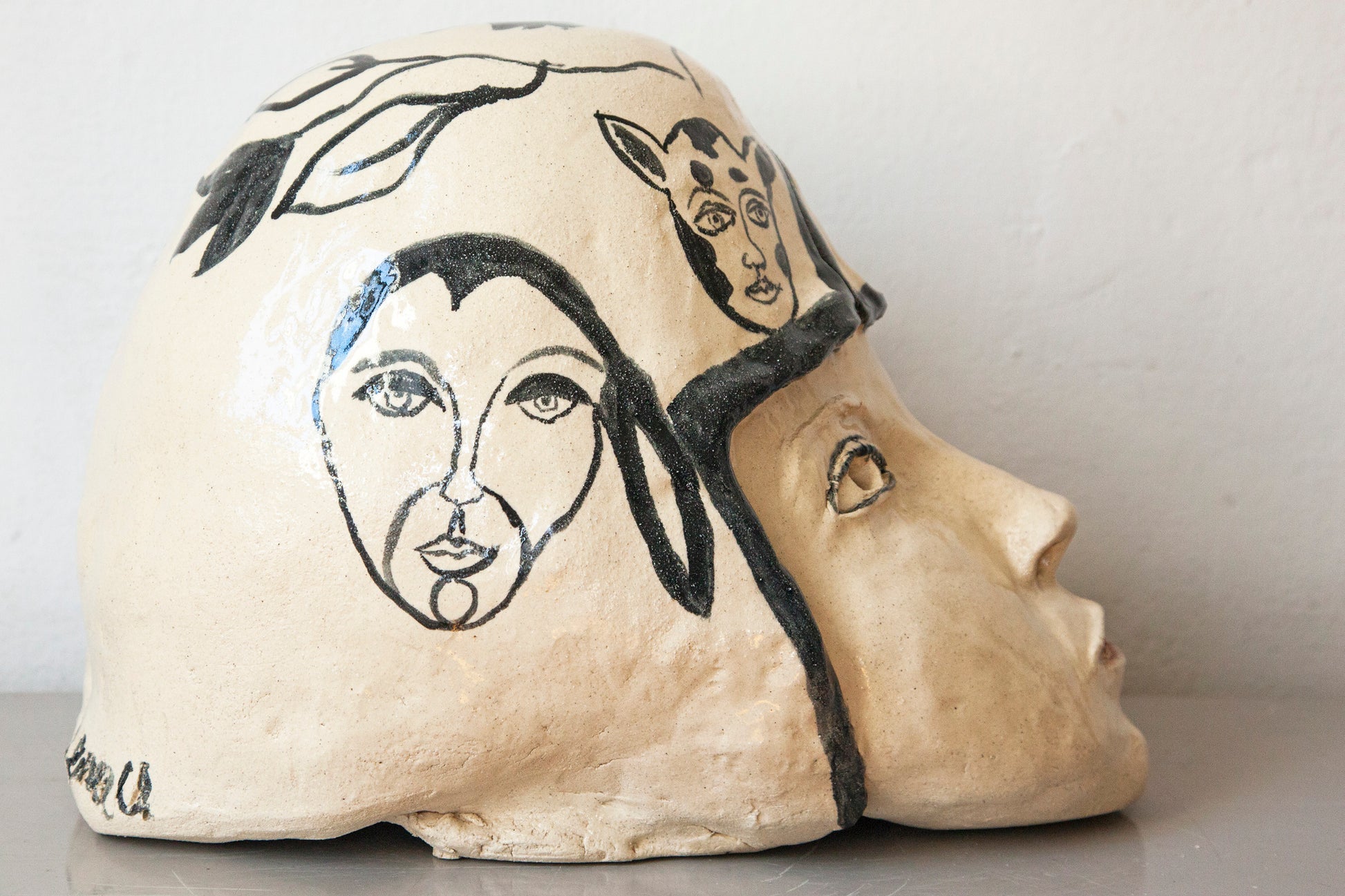 A unique handmade artwork ceramic figurine, "Comics" belongs to the series of original sculptures with fully-formed facial expressions. This particular series I've entitled "My Inner Lodgers".