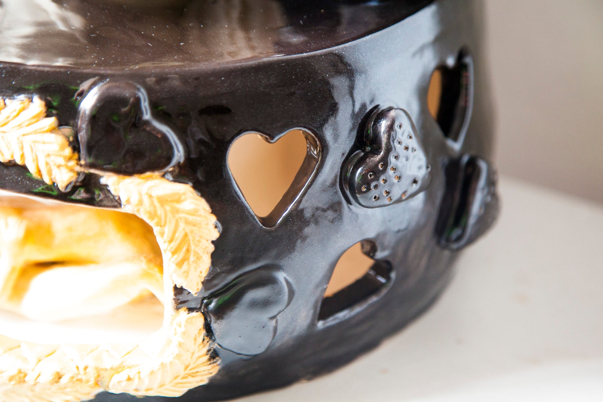 A unique handmade ceramic artwork, "Eros" belongs to the series called "Magic Boxes", original shells with fully-formed facial expressions.