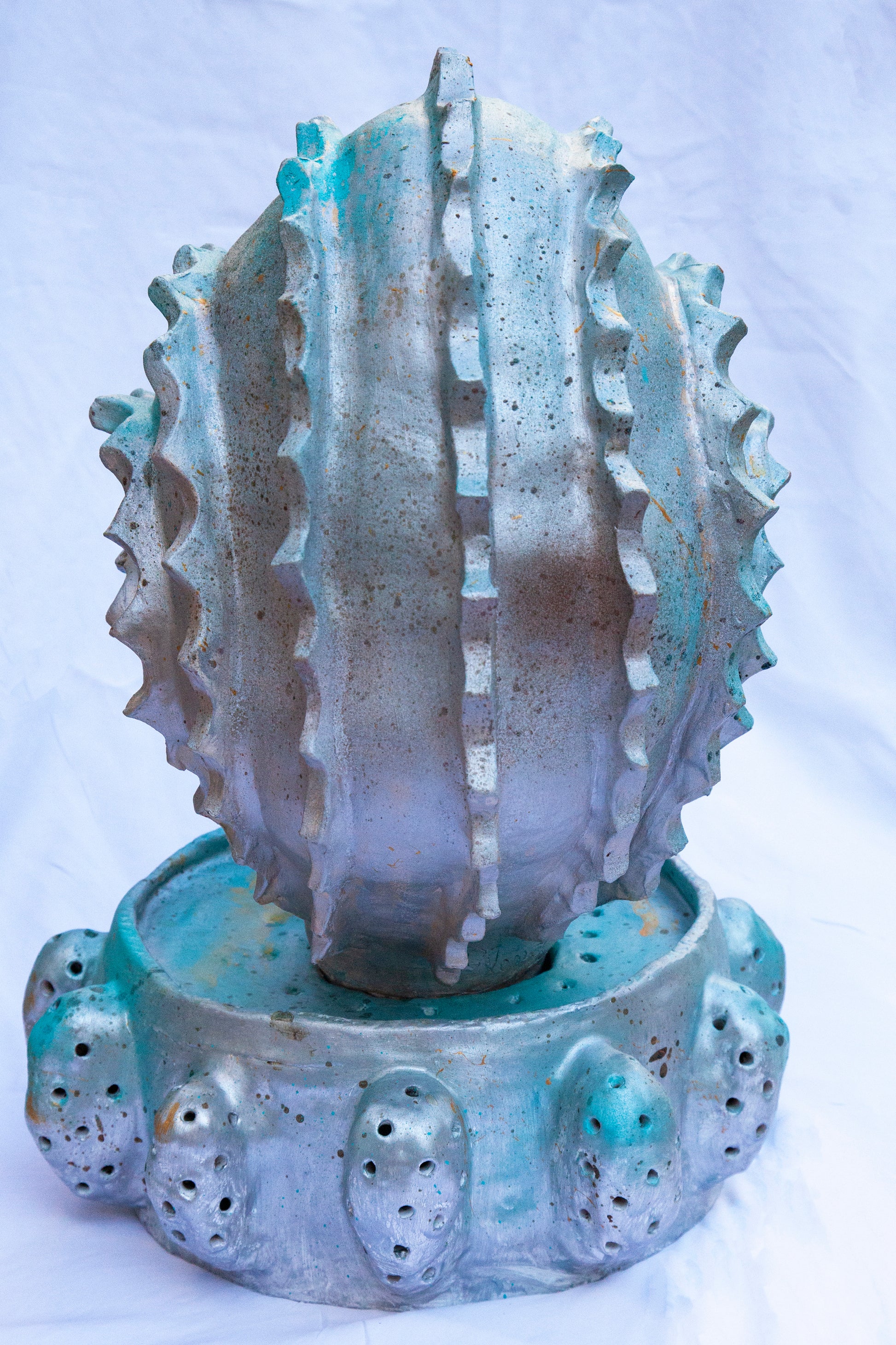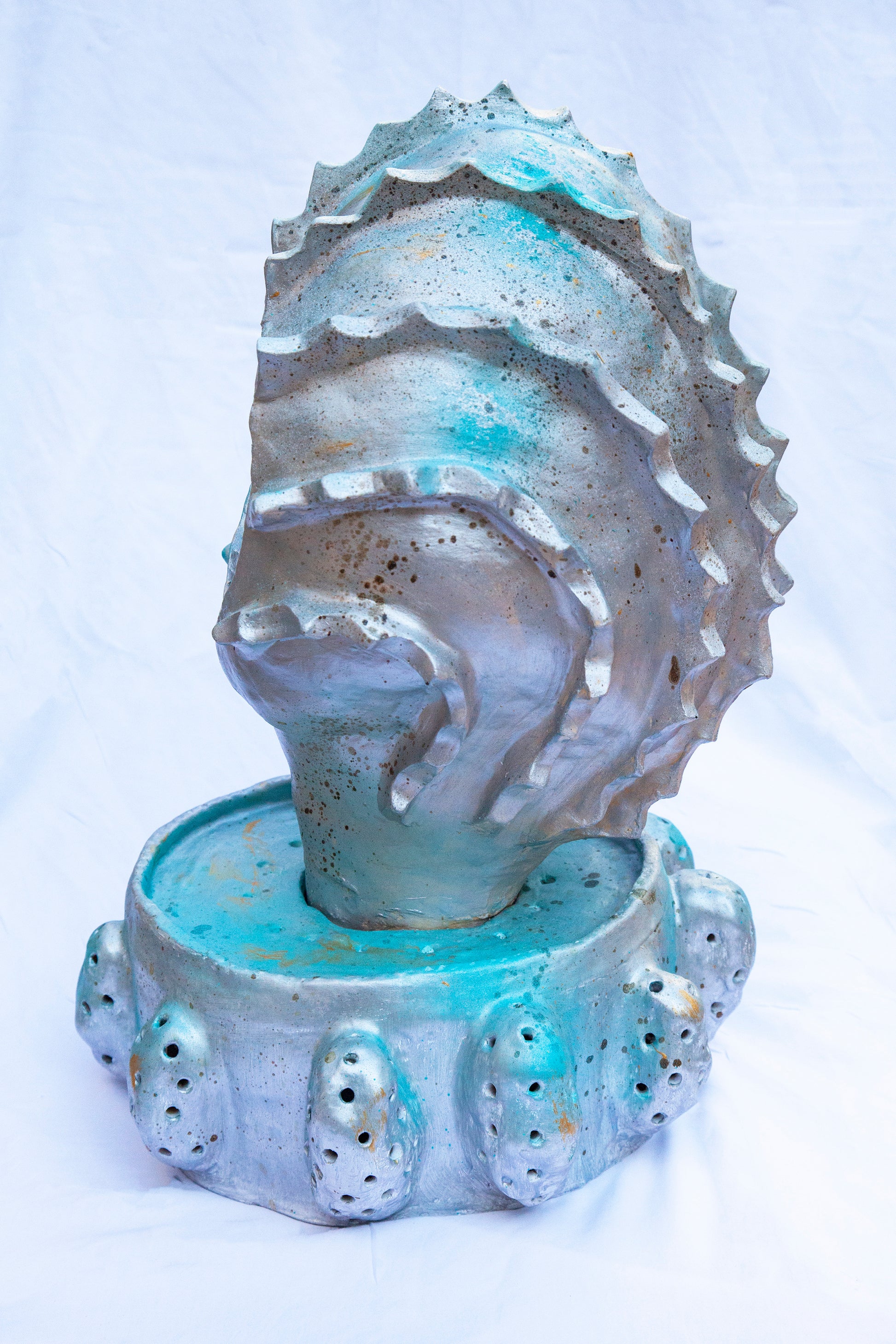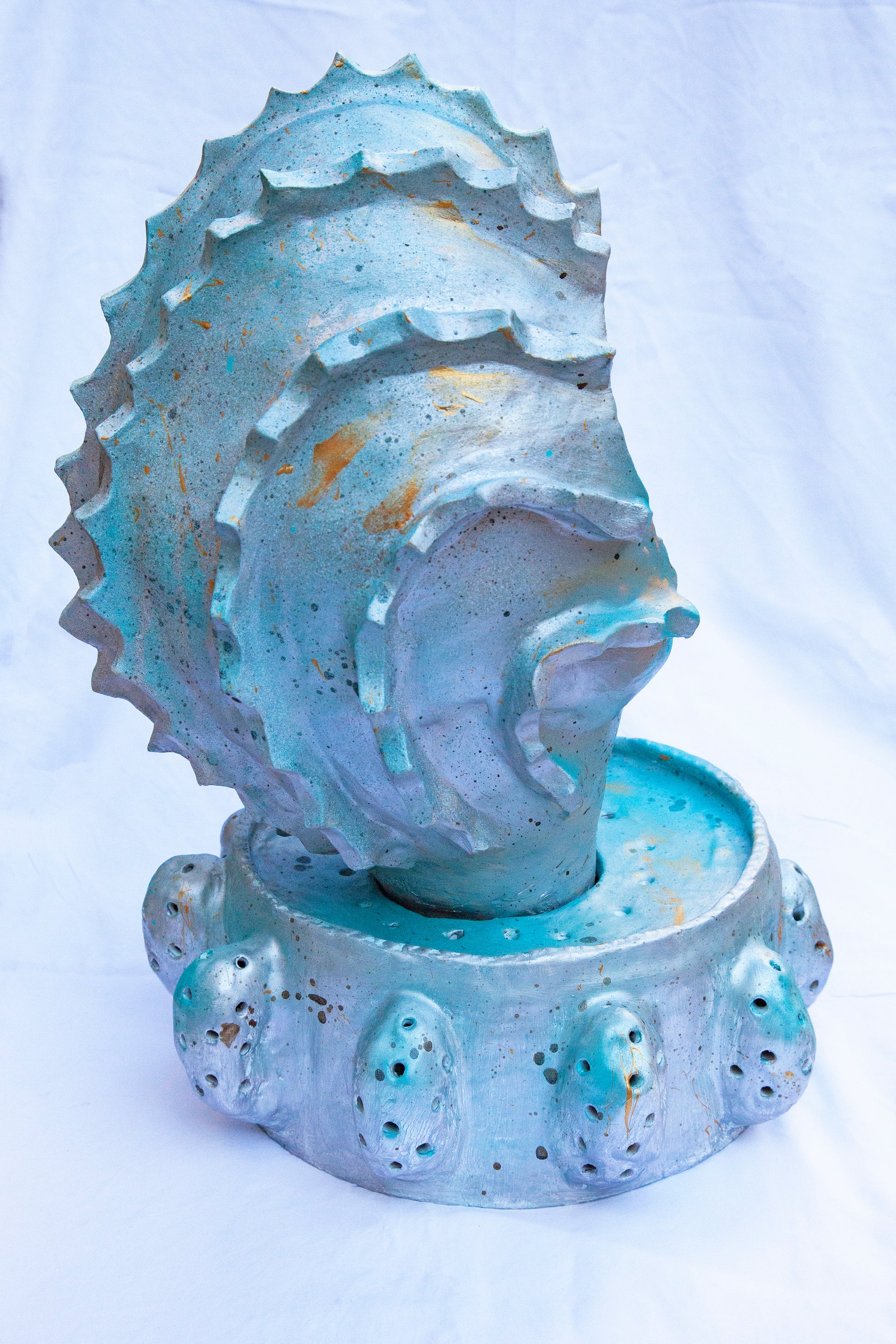 A unique handmade ceramic artwork, "Iner Traveler" belongs to the series called "Magic Boxes", original shells with fully-formed facial expressions.