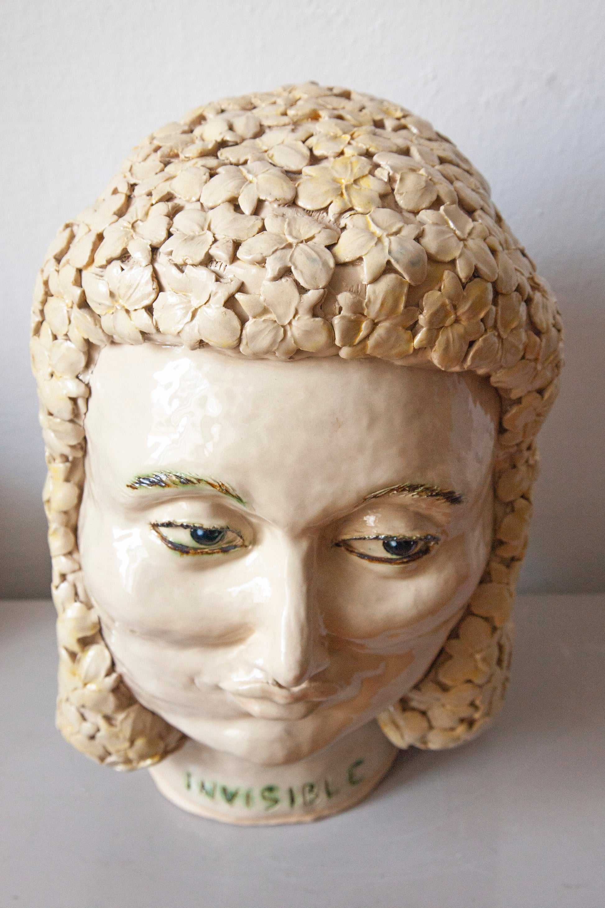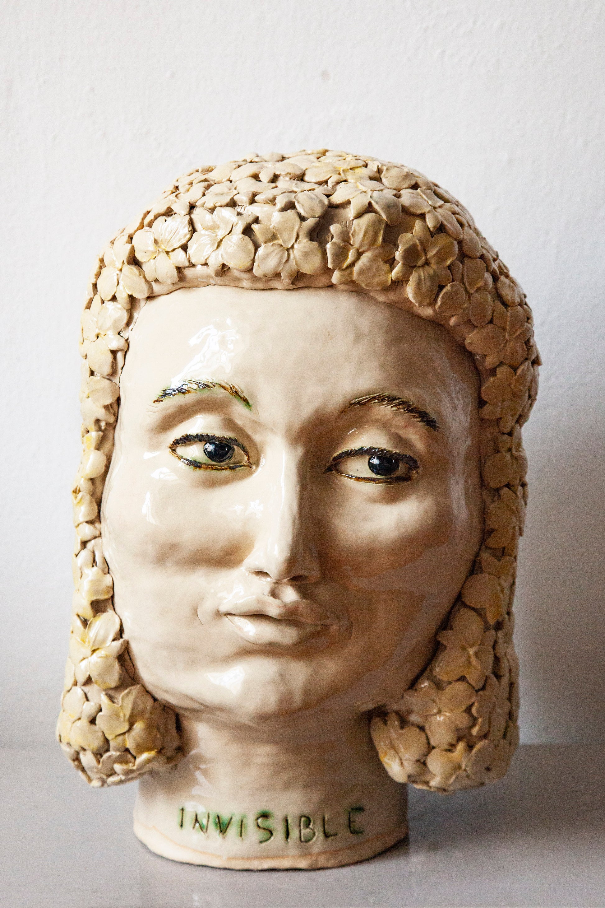 A unique handmade artwork ceramic figurine, "Invisible" belongs to the series of big, original sculptures with fully-formed facial expressions. This particular series I've entitled "My Inner Lodgers". For each of my figurines there is a background story of sorts.