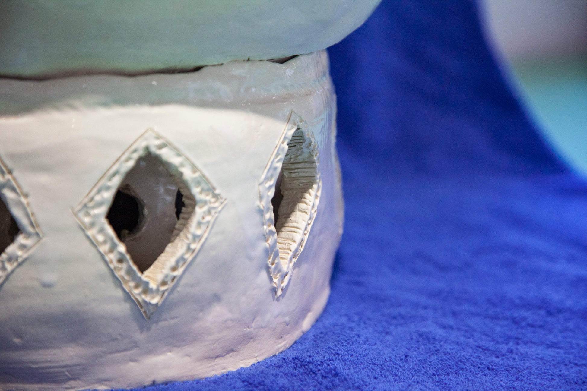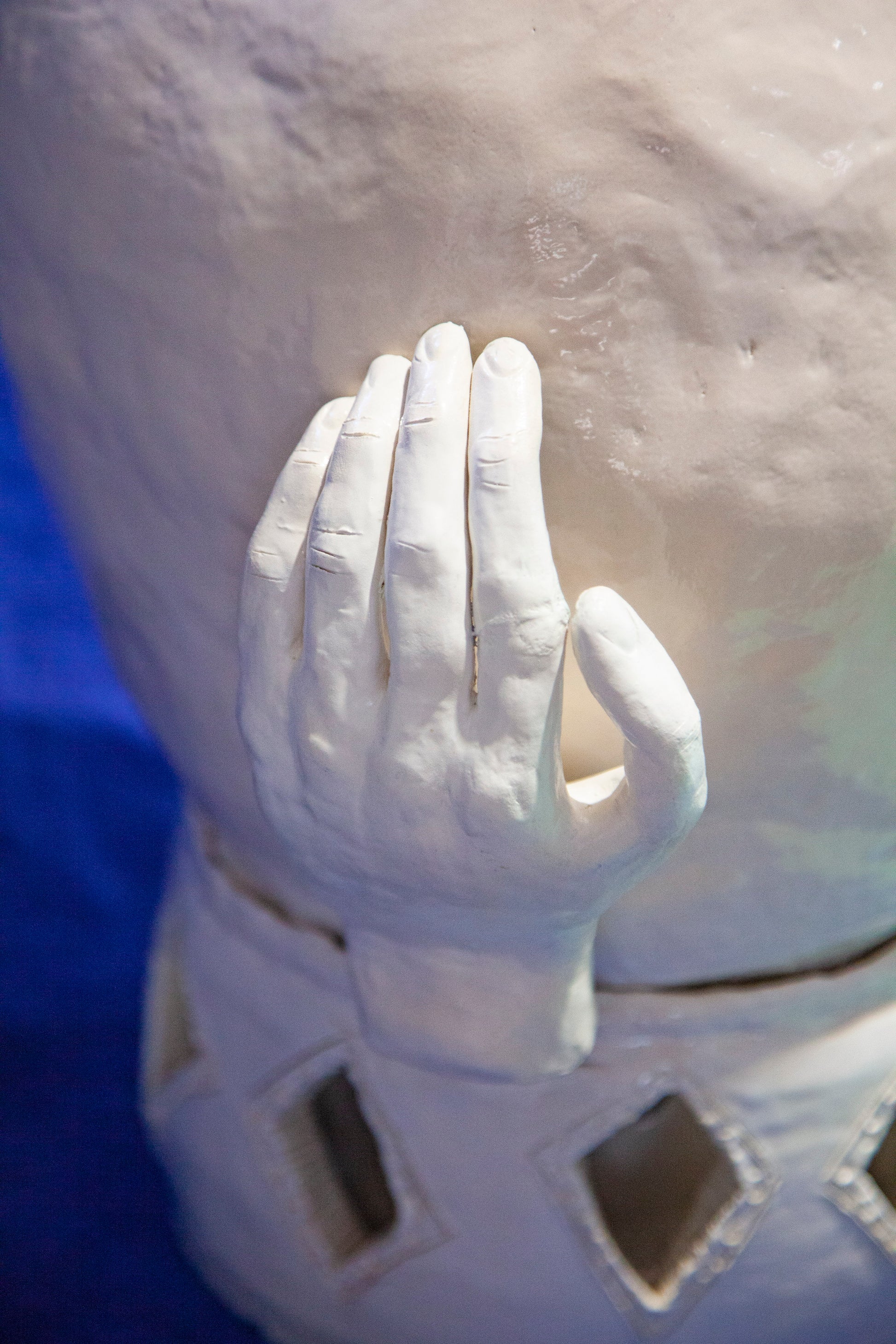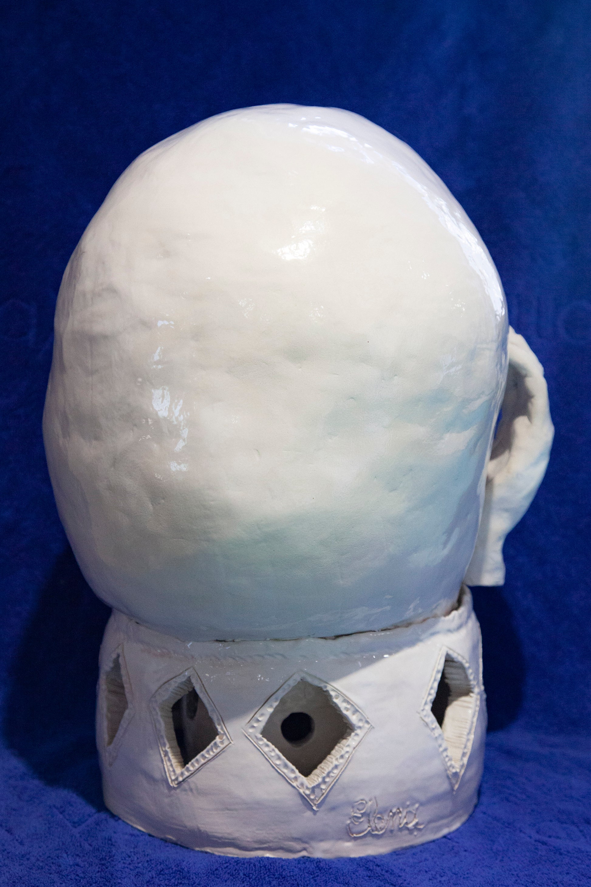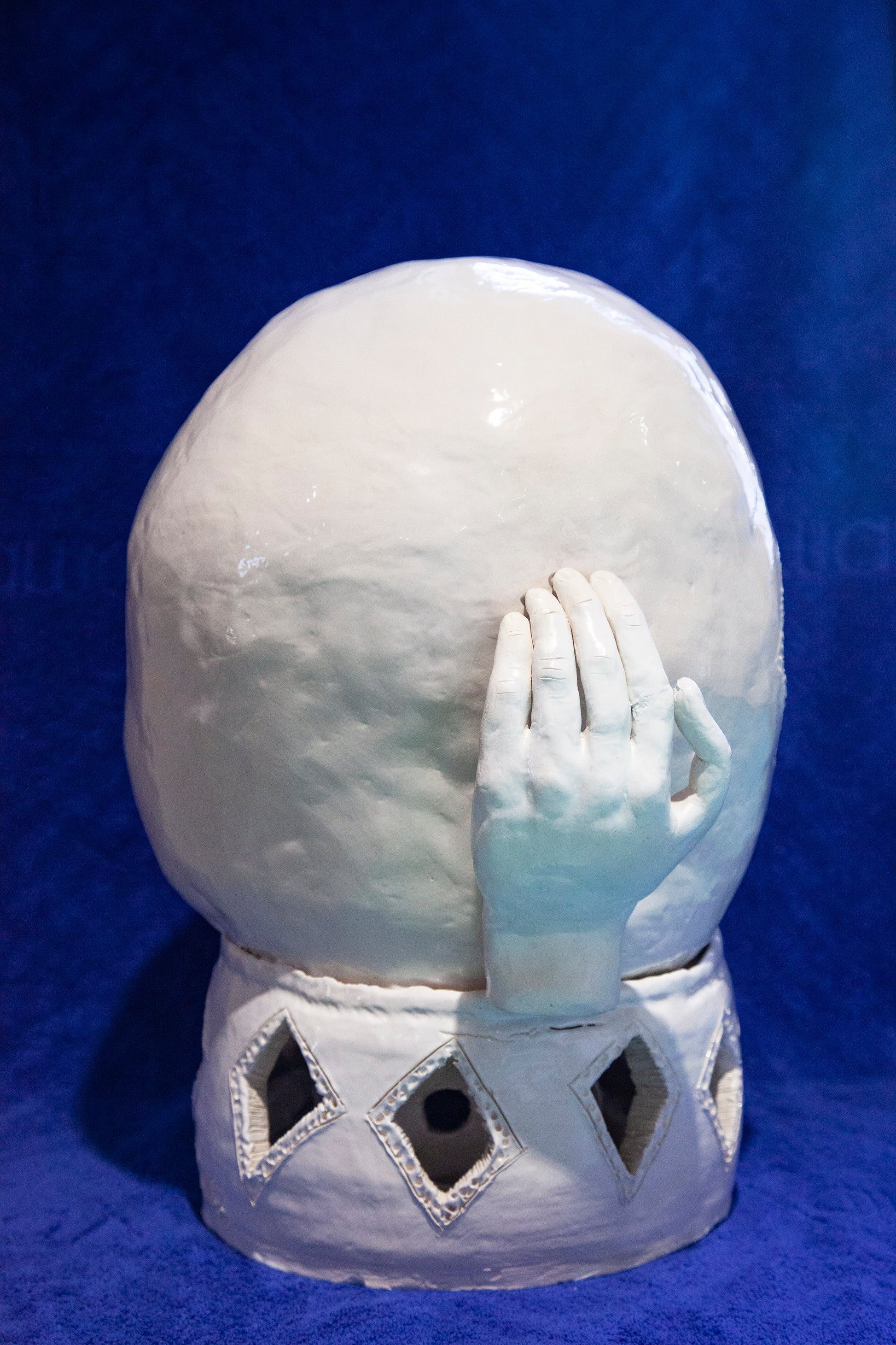 A unique handmade ceramic artwork, "Mano" belongs to the series called "Magic Boxes", original shells with fully-formed facial expressions.