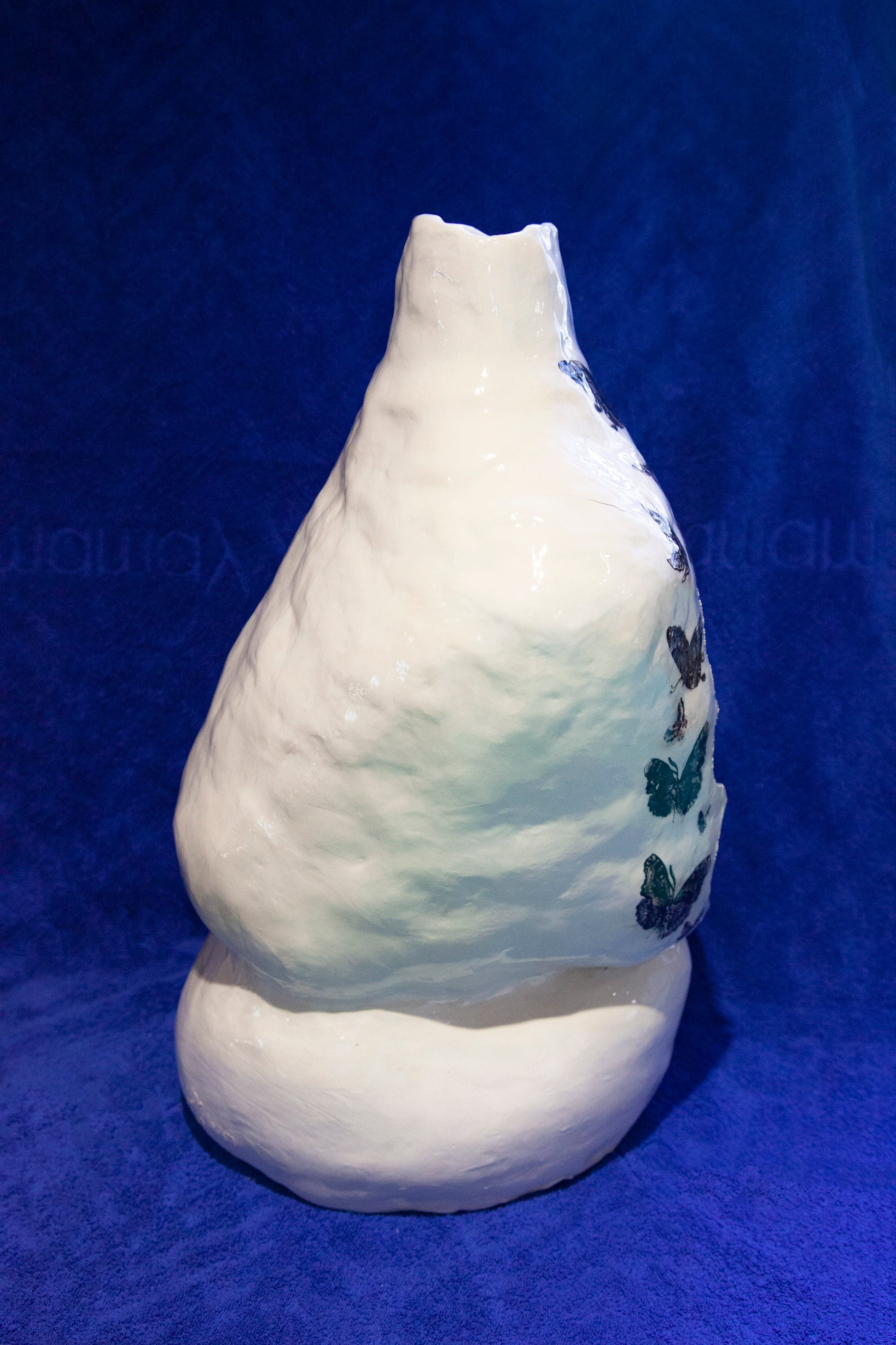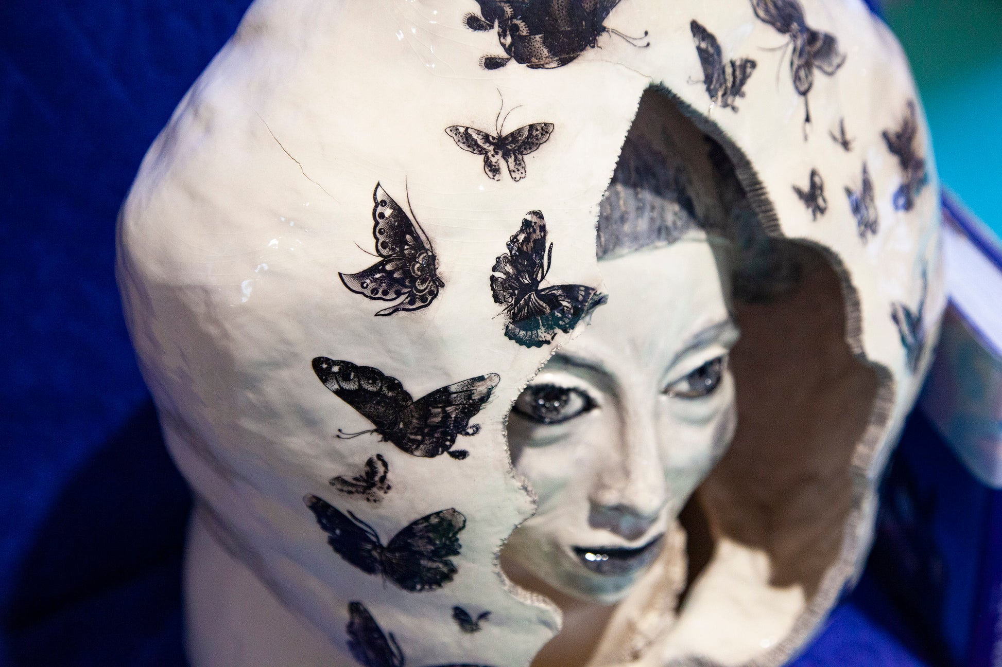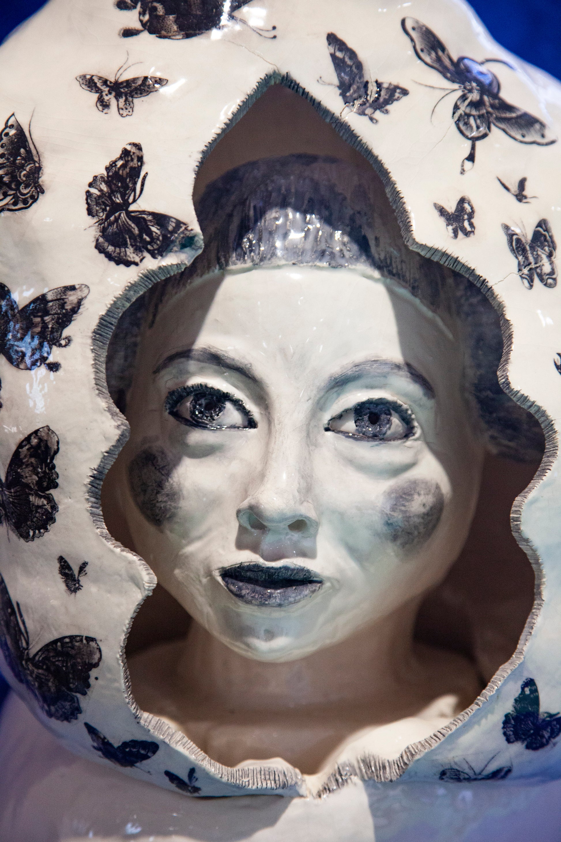 A unique handmade ceramic artwork, "Tango batterfly" belongs to the series called "Magic Boxes", original shells with fully-formed facial expressions.
