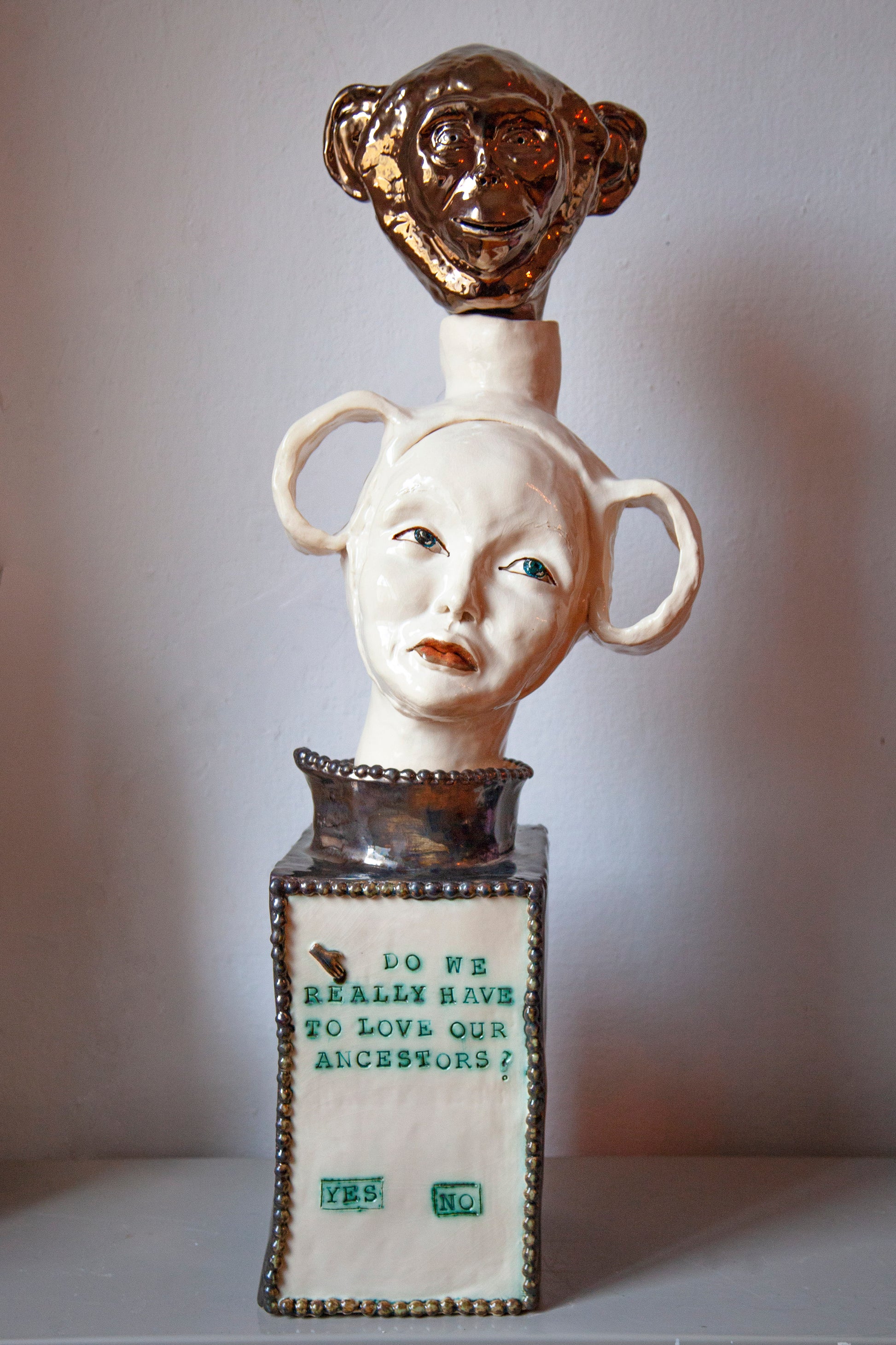 A unique handmade artwork ceramic figurine, "The Ancestor" belongs to the series of original sculptures with fully-formed facial expressions . This series I've entitled "My Inner Lodgers".