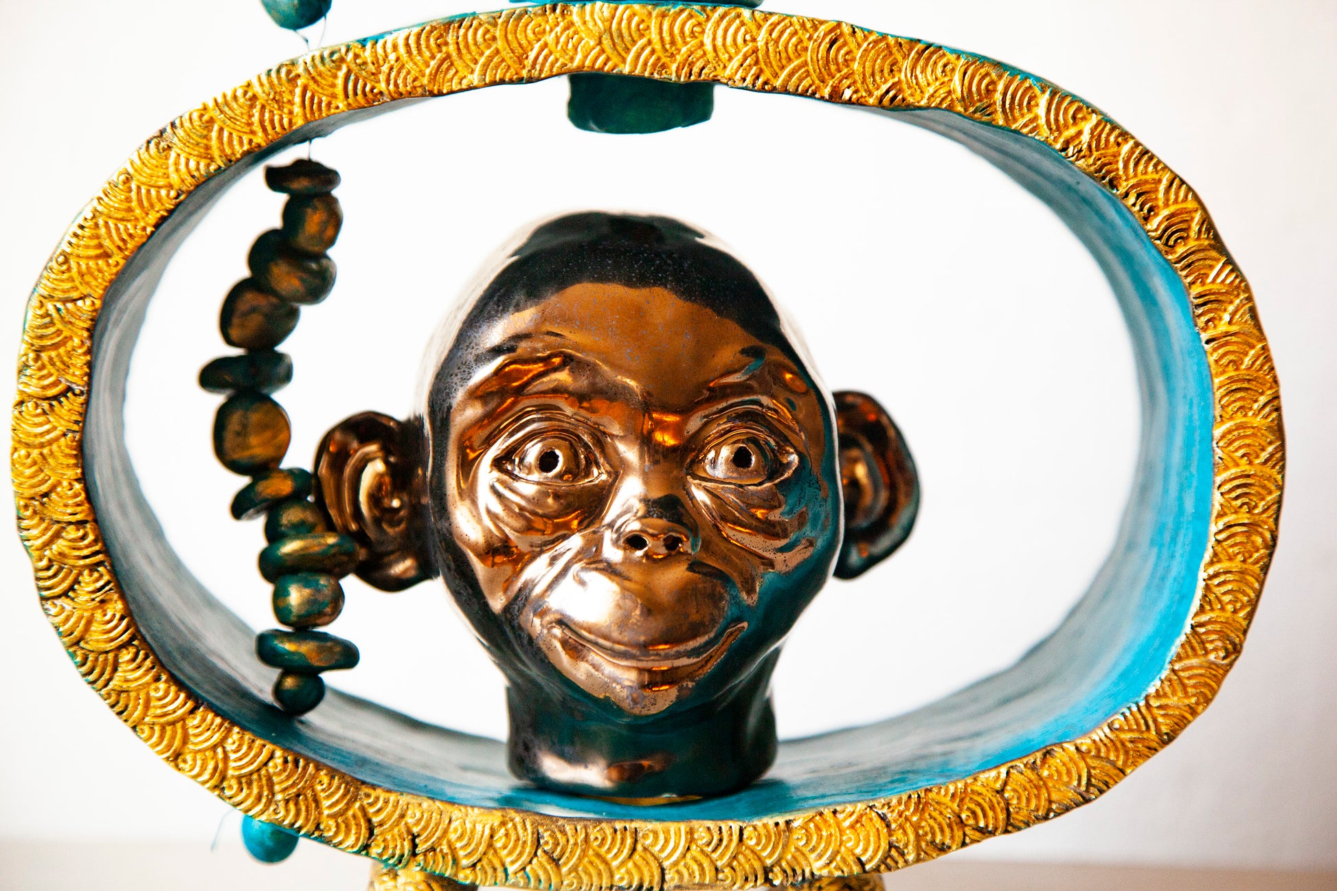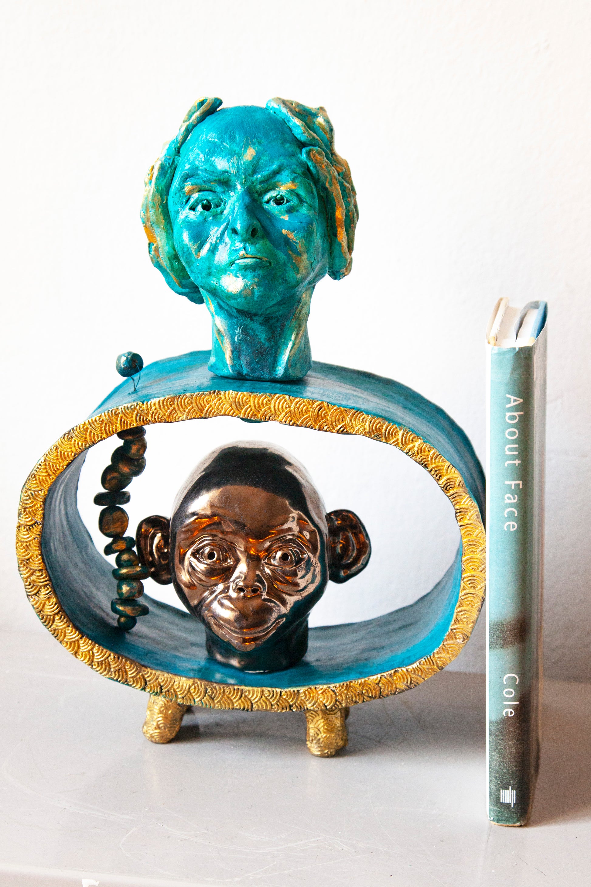 A unique handmade ceramic artwork, "The Balance" belongs to the series called "The Inner Lodgers", original sculptures with fully-formed facial expressions.