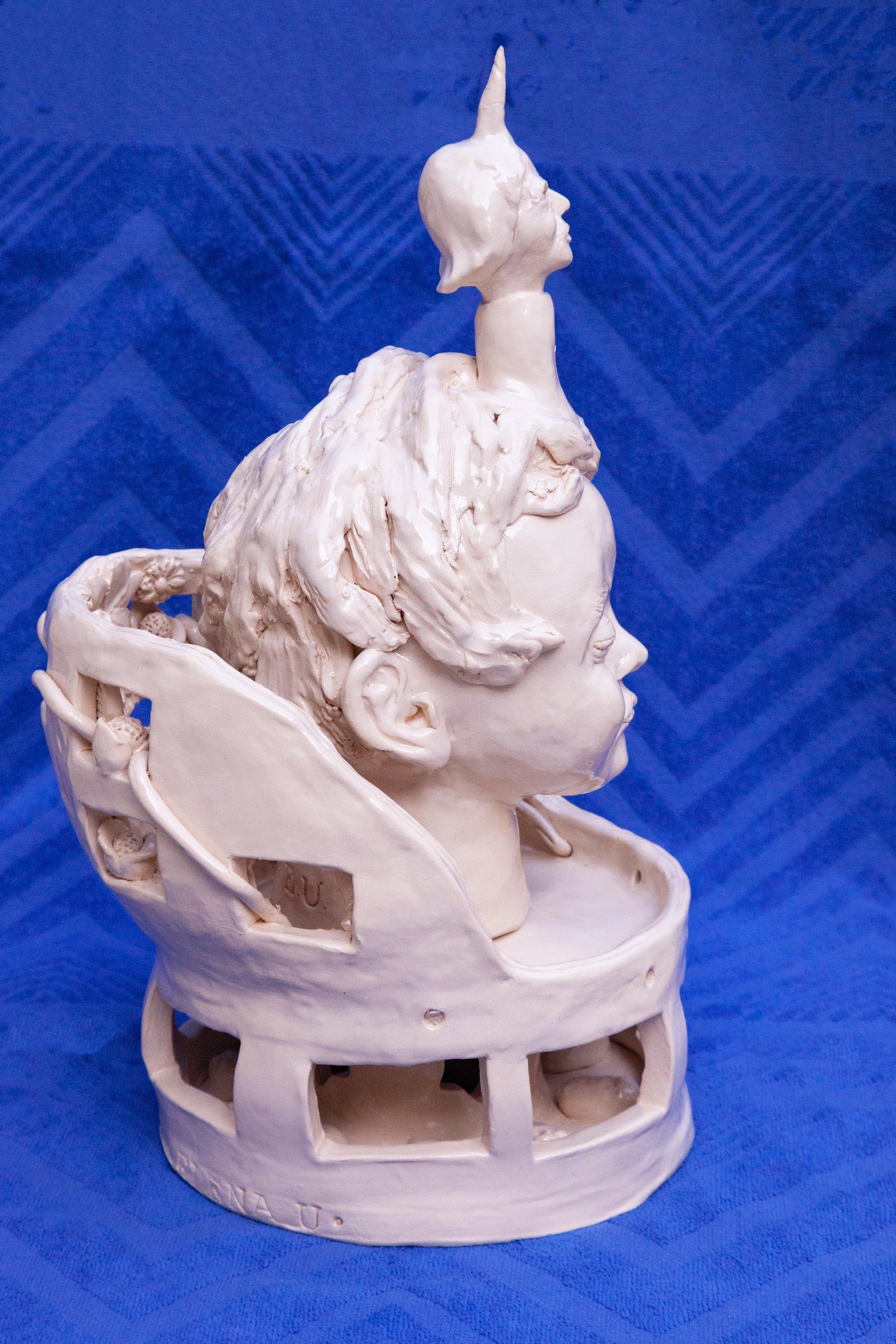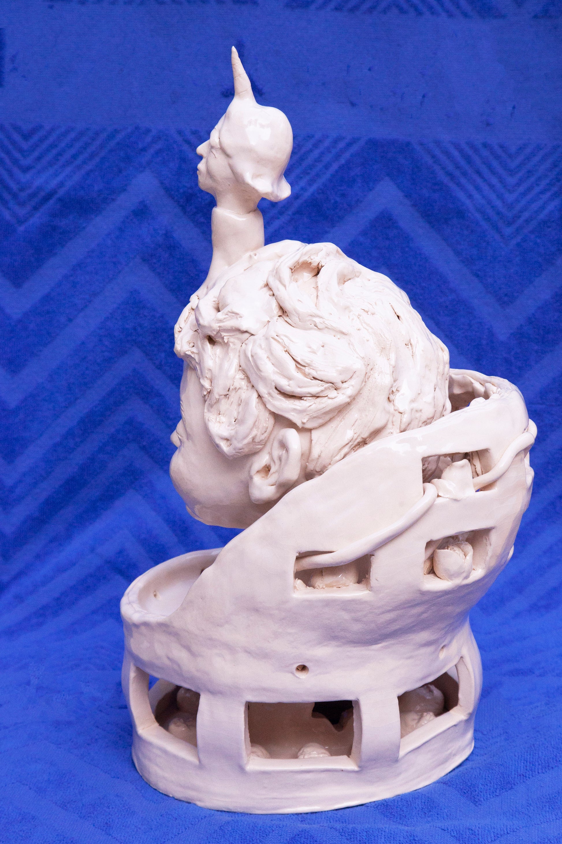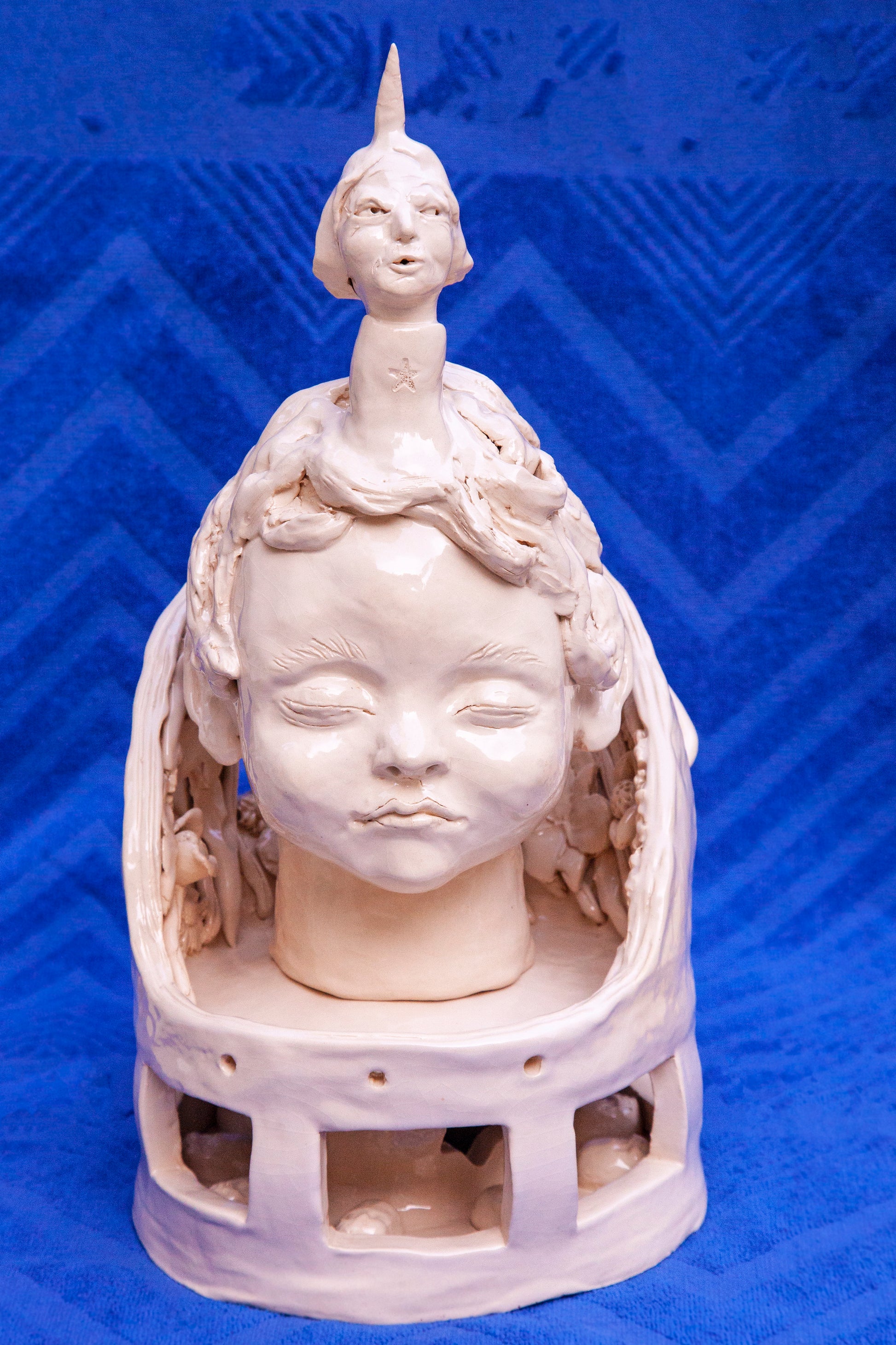 A unique handmade ceramic artwork, "Iner Traveler" belongs to the series called "Magic Boxes", original shells with fully-formed facial expressions.