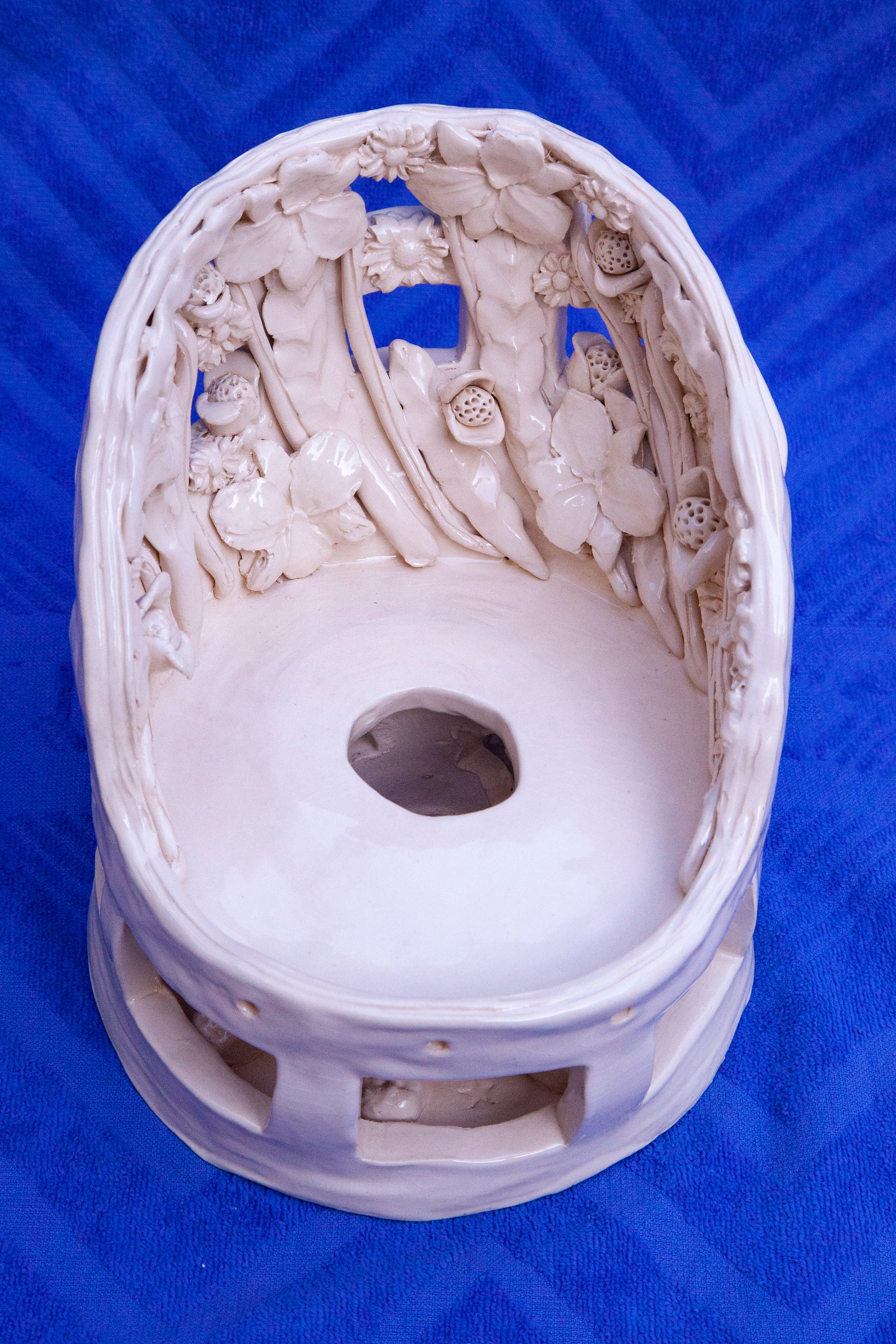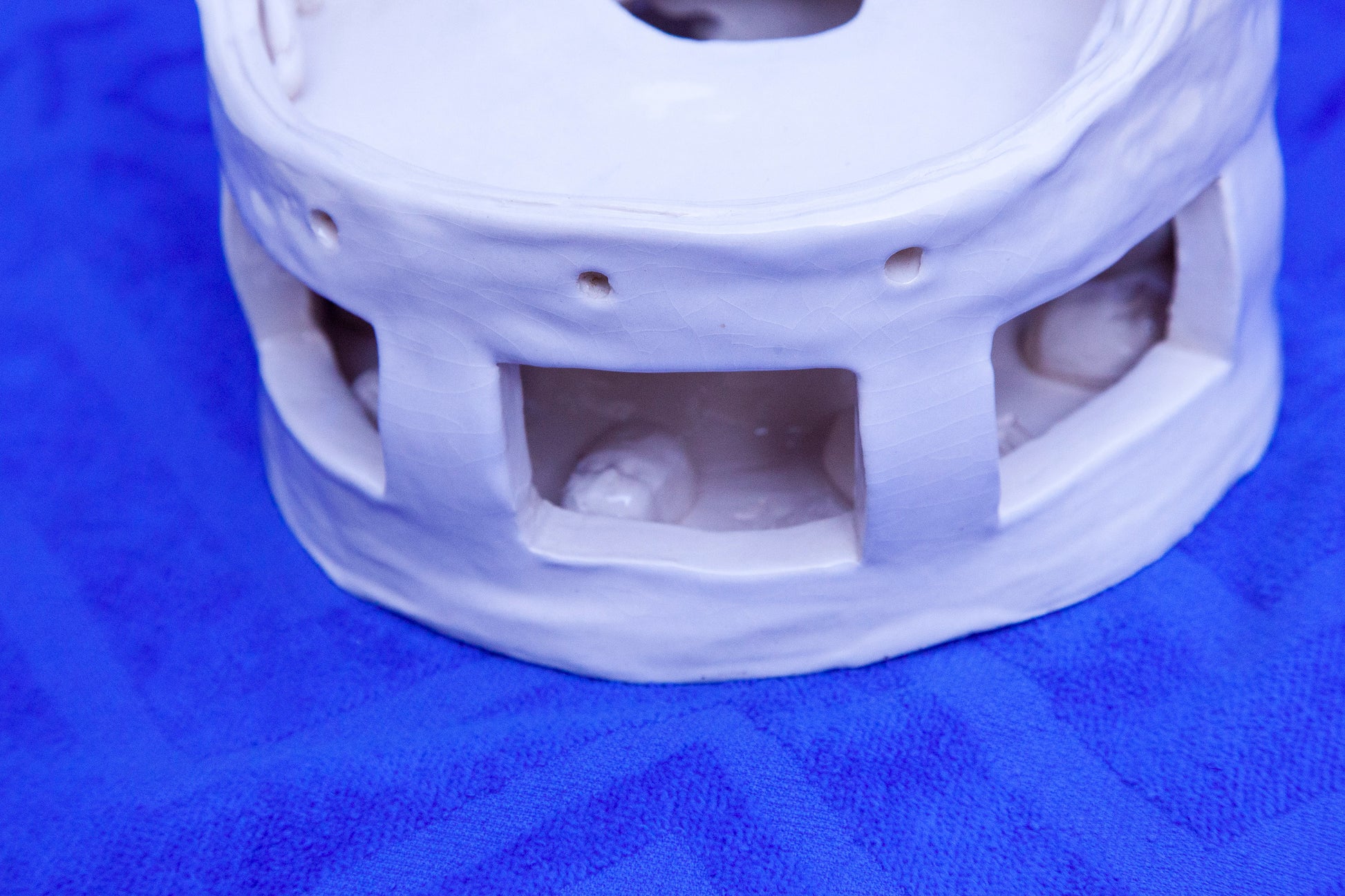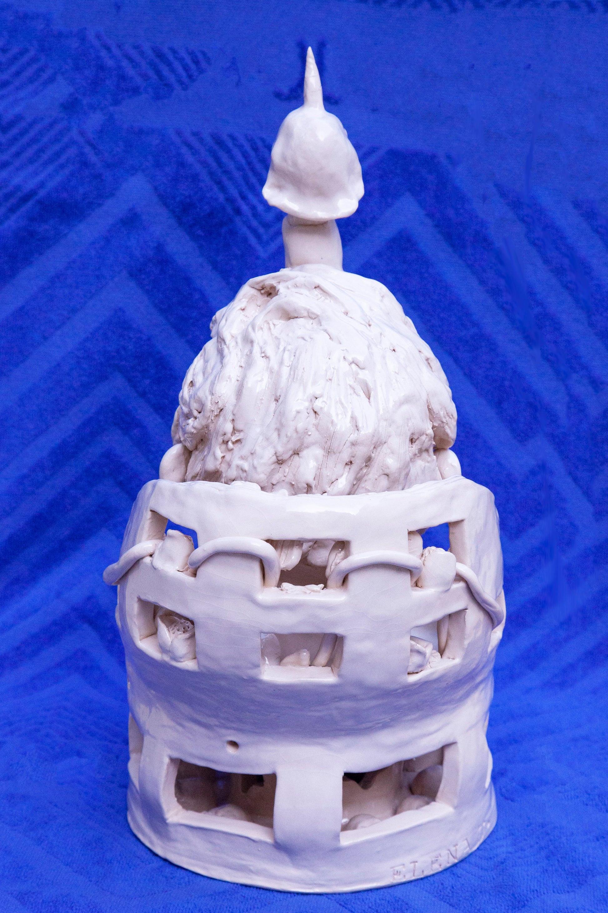 A unique handmade ceramic artwork, "Iner Traveler" belongs to the series called "Magic Boxes", original shells with fully-formed facial expressions.