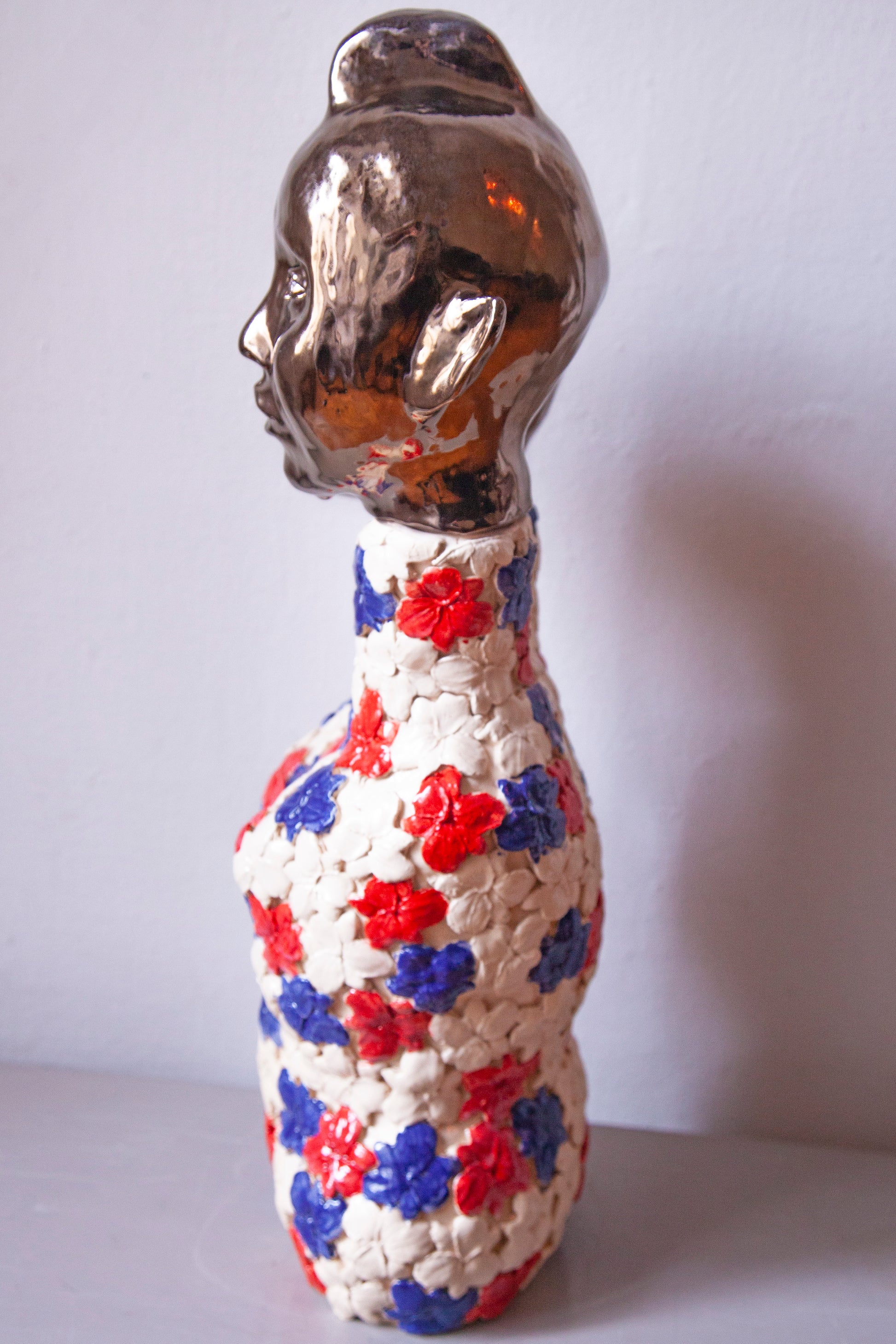 A unique handmade artwork ceramic figurine, "They" belongs to the series of original sculptures with fully-formed facial expressions and decorated bodies. This series I've entitled "My Inner Lodgers". For each of my figurines there is a background story of sorts.
